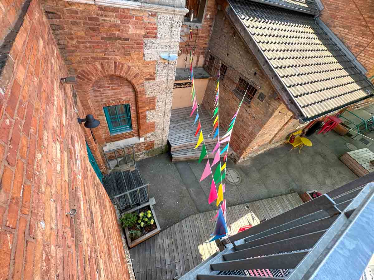 Der dazugehörige Turmgarten (Foto) befindet sich im Innenhof des Turmcafes.