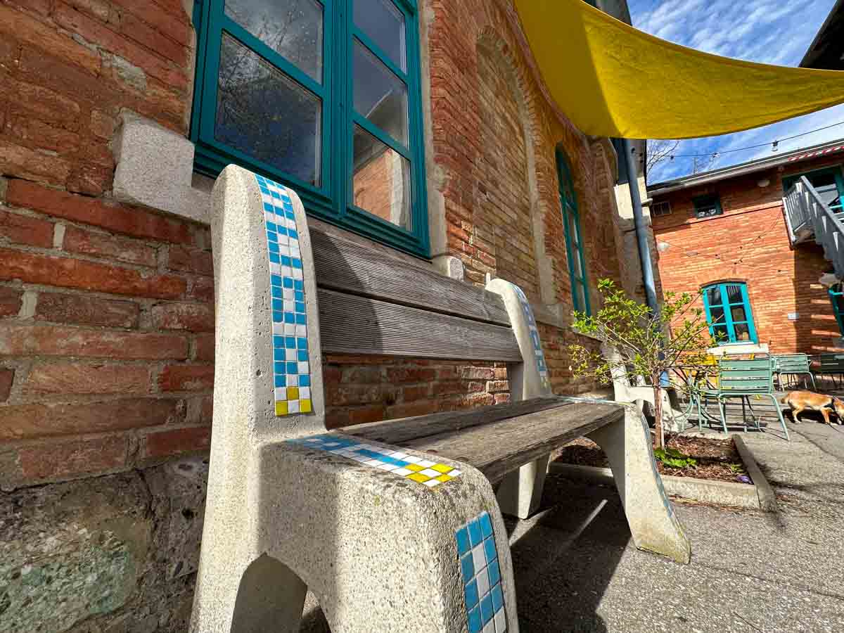 Alle Elemente, Sitzgelegenheiten und Bepflanzungen, wurden von den Jugendlichen des Stadtjugendrings selbst entworfen, gebaut und gepflanzt.