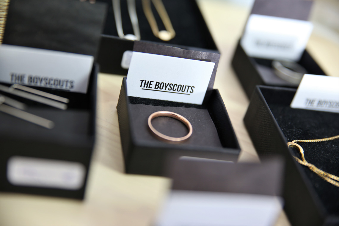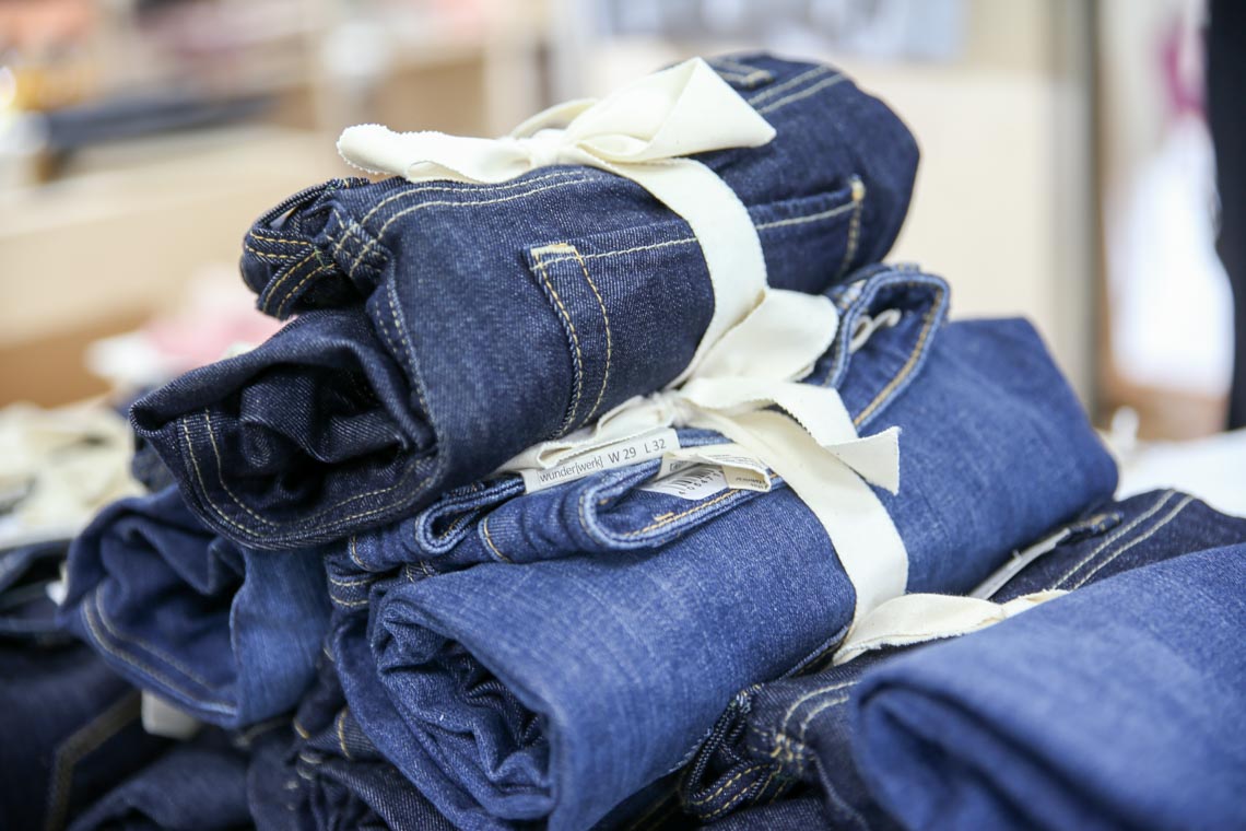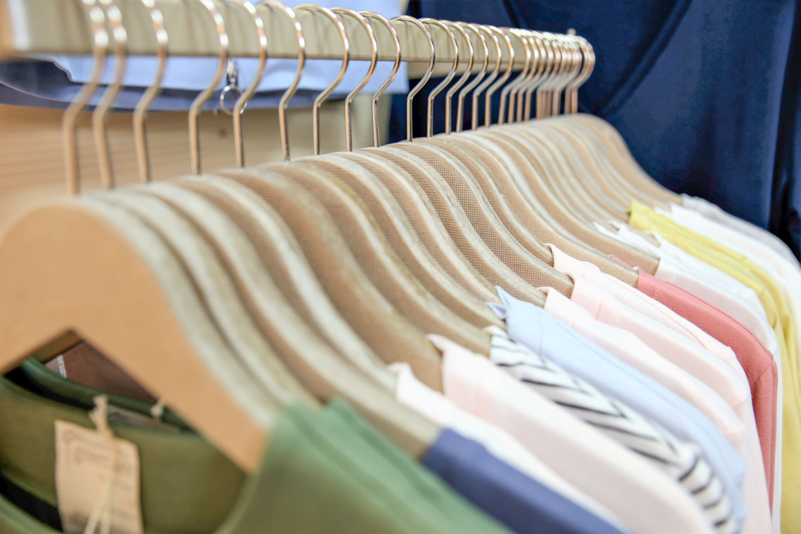 Selbst die Kleiderbügel hier sind nachhaltig: Die Bügel sind aus gepresstem Altpapier.