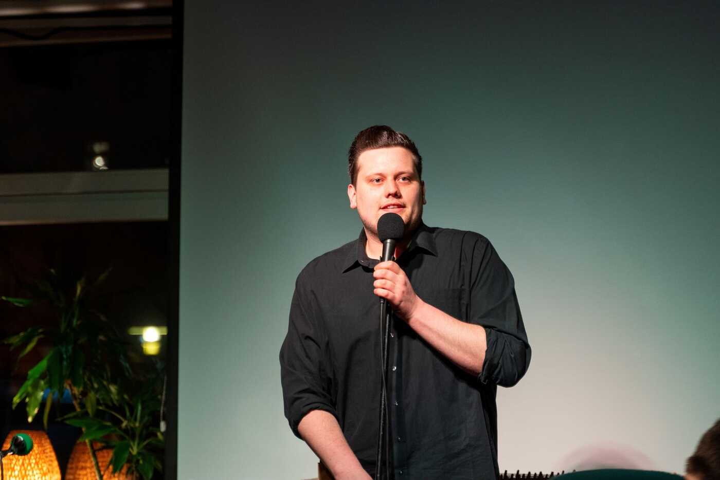Seit 2019 lädt Thomas Eiwen jeden Monat Slamer-Größen und Newcomer der deutschsprachigen Poetry Slam Szene in sein Format »Rosenslam« nach Rosenheim ein.