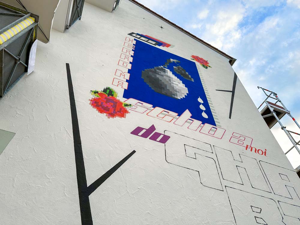 Die gebürtige Chiemgauerin Agnes Maria Lindner kam schon früh mit Street Art in Berührung. Während ihres Design-Studiums in Berlin entstanden Anfang der 2000er Jahre die ersten Arbeiten im öffentlichen Raum. Seit 2022 lebt und arbeitet die Künstlerin wieder im Chiemgau. Neben ihrer Tätigkeit als Design und Art Director beschäftigt sie sich v.a. mit den Gegensätzen des Analogen und Digitalen, mit Elementen von Typografie, Grafik, abstrakter und fotorealistischer Malereiauf Fassade und Leinwand.