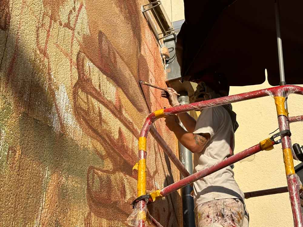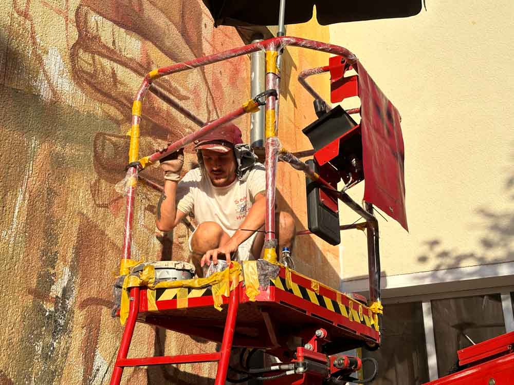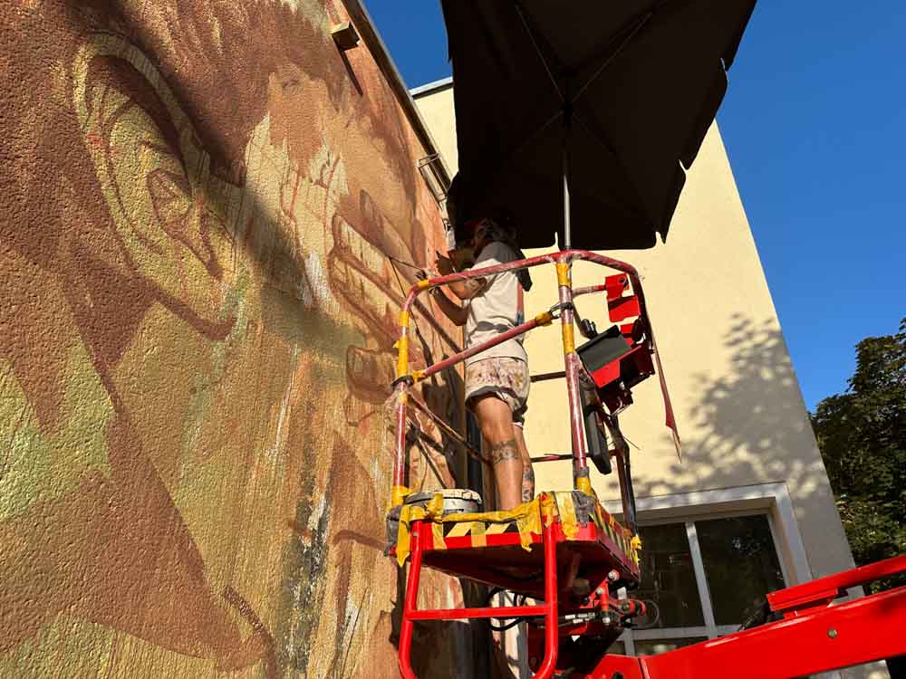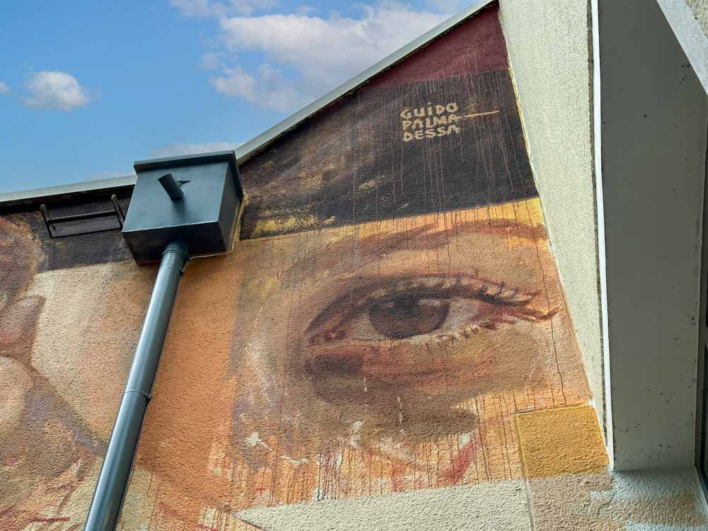 Guido Palmadessa, geb. 1988 in Buenos Aires, lebt seit 2018 in Berlin. Er studierte Bildende Kunst mit Schwerpunkt Zeichnen an der Nationalen Universität der Künste in Buenos Aires. Seither hat er an vielen Orten der Welt, u.a. in Portugal, Deutschland, Italien, Spanien, Kroatien, Mexiko, Bolivien, Chile und Argentinien, große Wandgemälde geschaffen. Seine Werke sind eine ästhetisch-anmutende Mischung aus Fantasie, Poesie und sozialem Realismus, das Motiv stets an sozial-politischen Dimensionen geknüpft. Kunst ist für ihn vor allem eine Brücke, die Menschen miteinander verbindet.