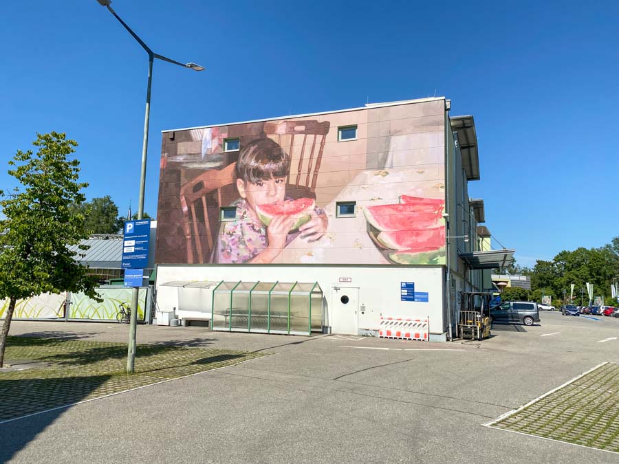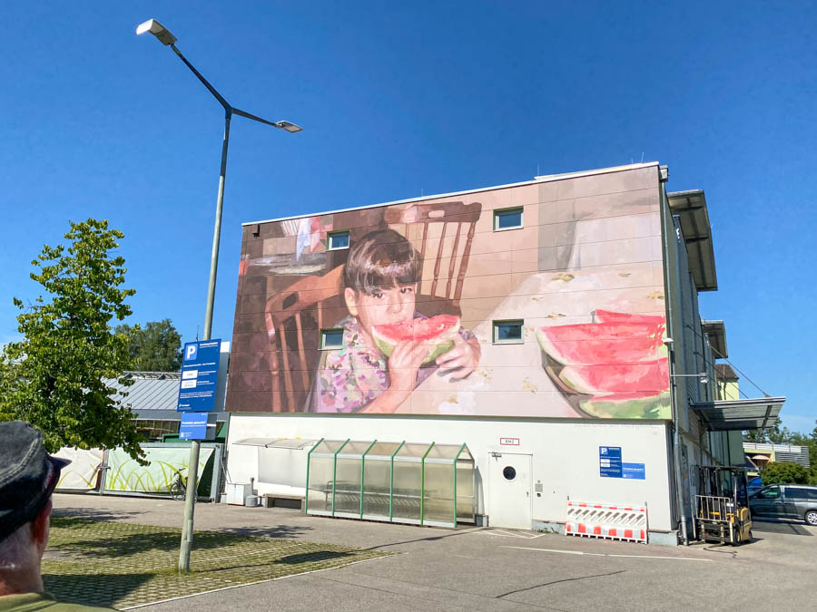 Dieses schon fast impressionistisch anmutenden Mural, zeigt eine Küchen-Momentaufnahme von einem Kind, welches als Pausensnack ein Stück Melone isst. Die Aufnahme ist der Freund der Künstlerin als Kind.