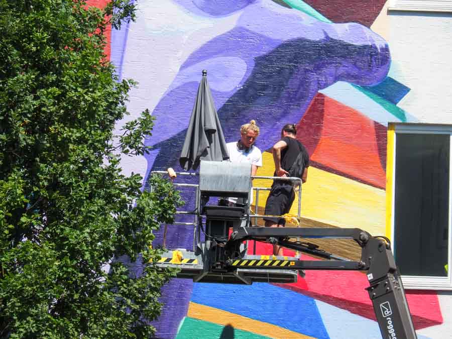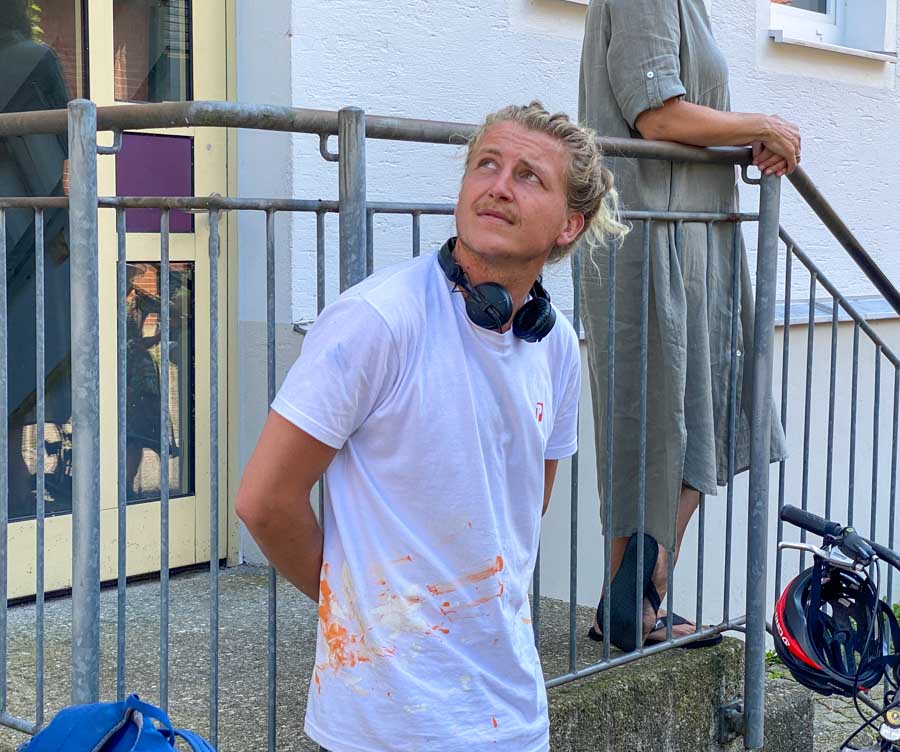 Julian Strohmeier an seiner Wand am Finsterwalder-Gymnasium, Transit Art Rosenheim, 2022