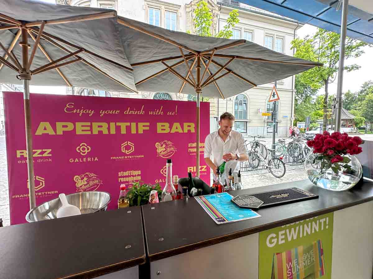 We Love Summer, We Love Sprizz unter diesem Motto gibt es jeden Samstag die RIZZ Aperitif Bar direkt vor dem Haupteingang bei Galeria Karstadt ...