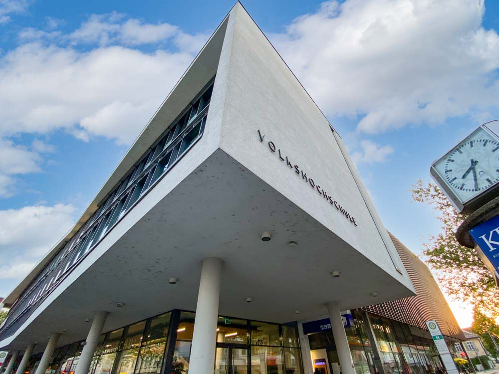 Mehr als 900 Kurse im Bereich Sprache und Kultur, politische Bildung, Sport und Gesundheit, Beruf und Weiterbildung werden jährlich in der lichtdurchfluteten VHS angeboten.